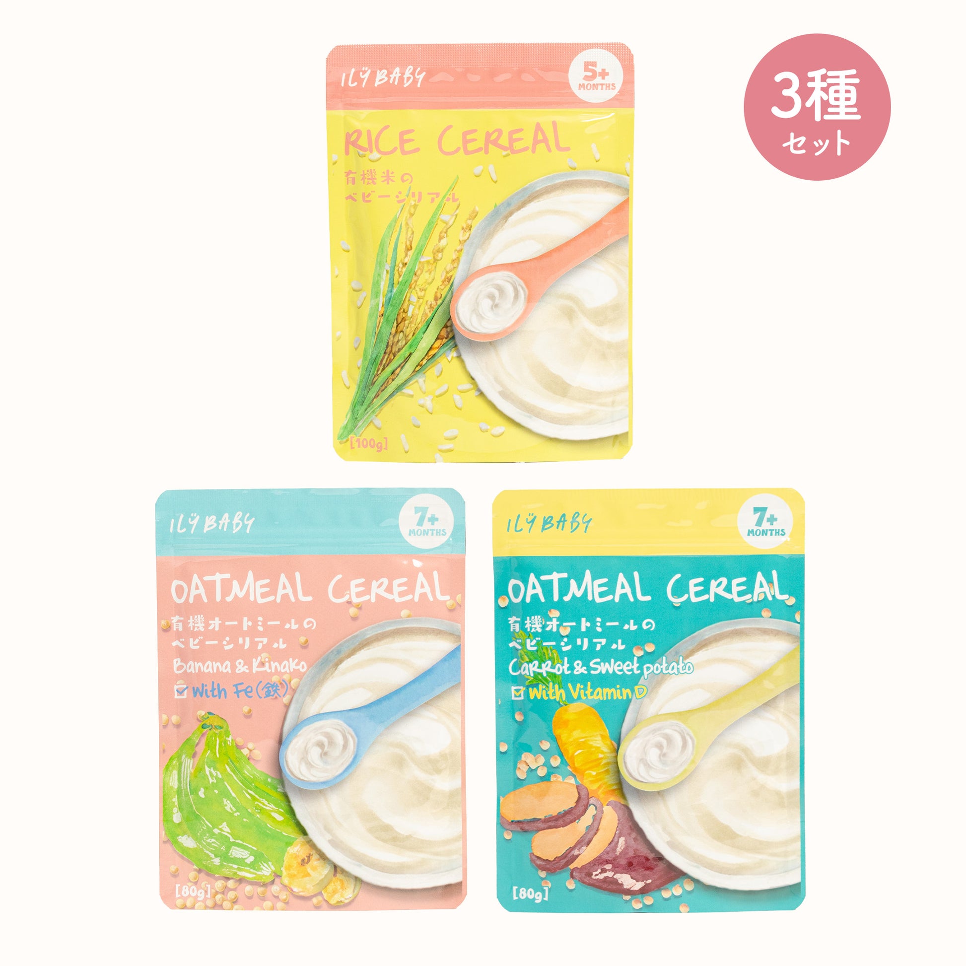 赤ちゃんの毎日の栄養を、自然のやさしさで支えるベビーシリアル3種セットです。